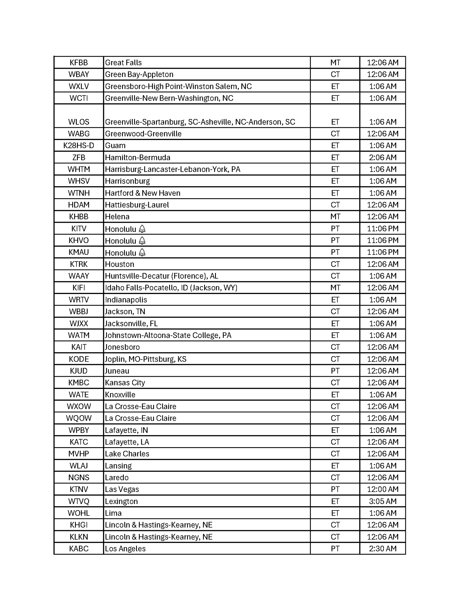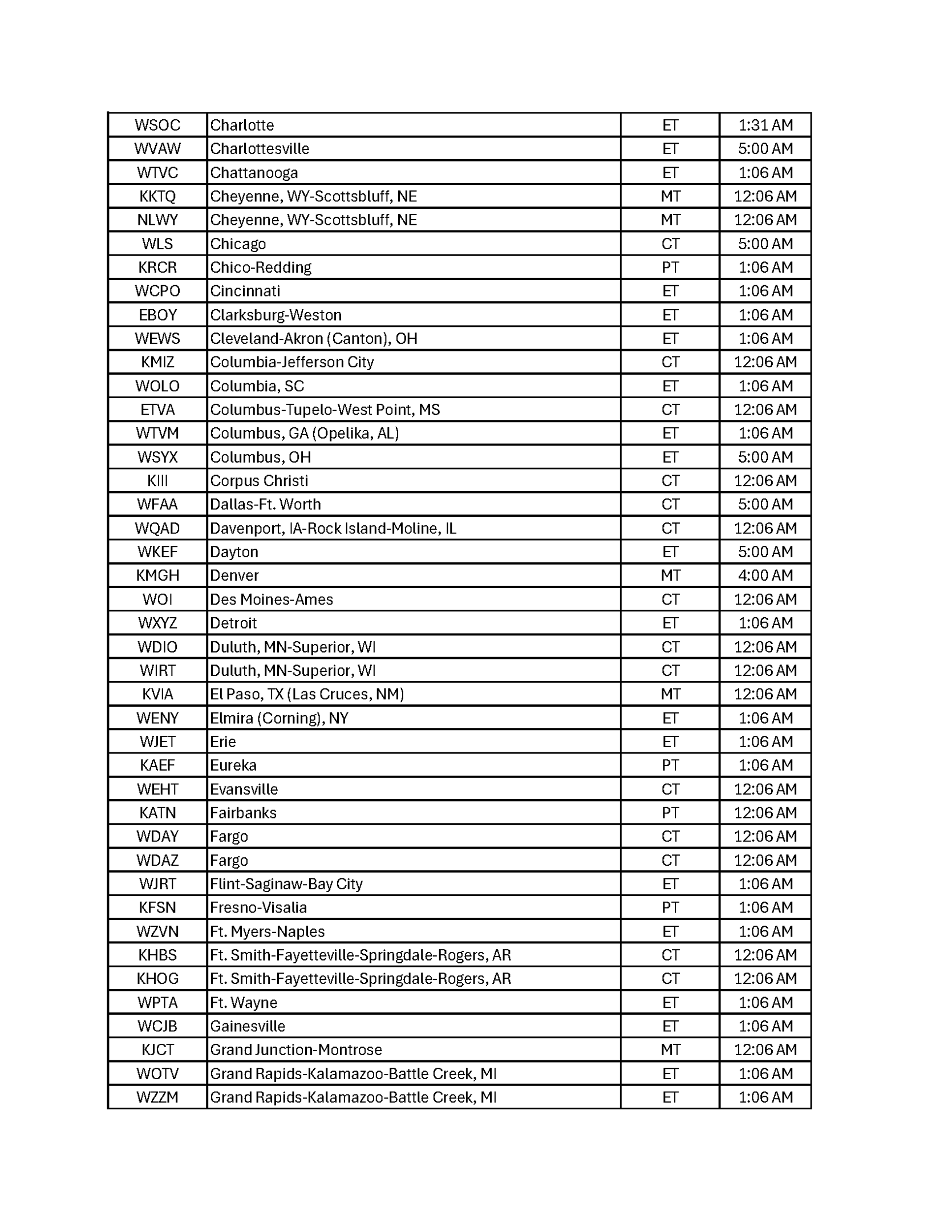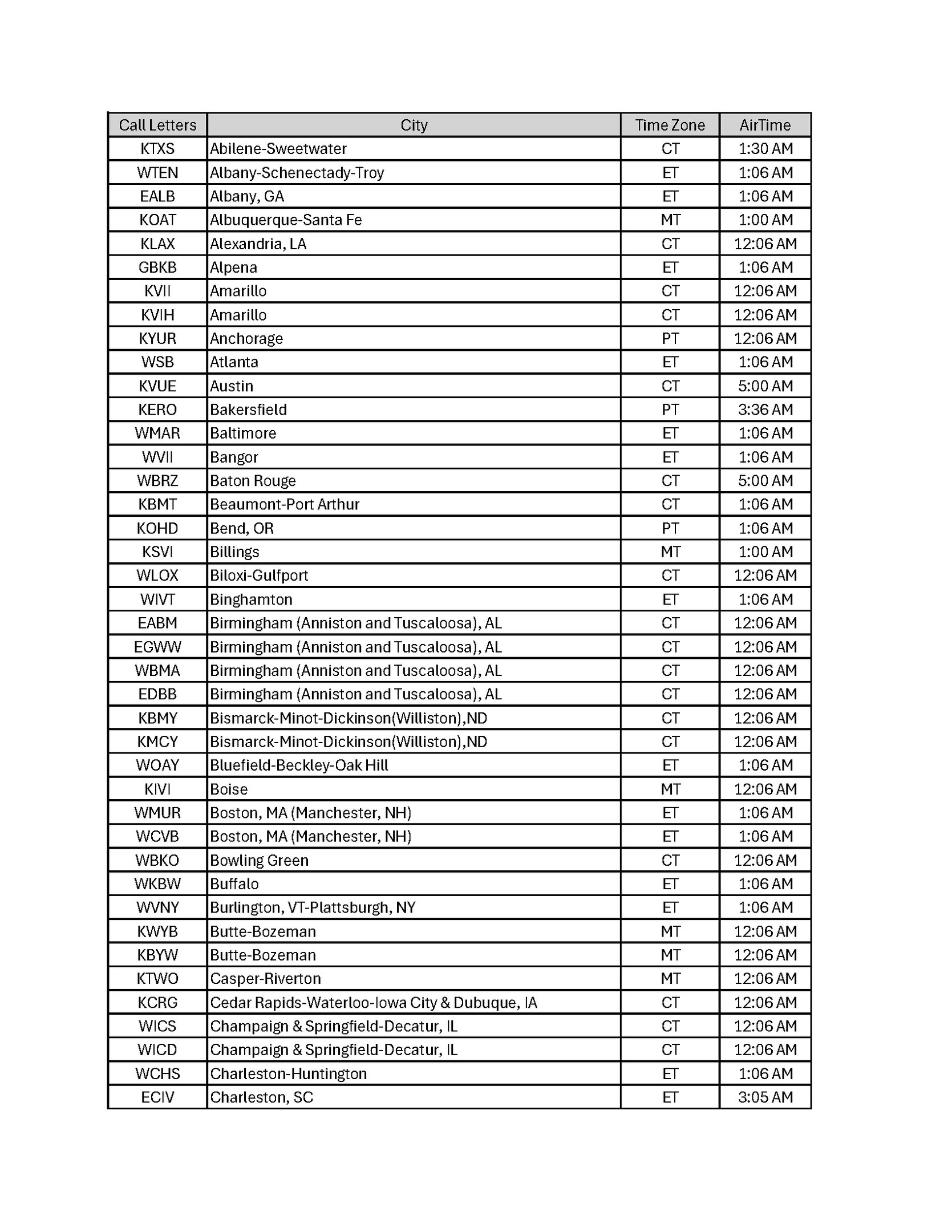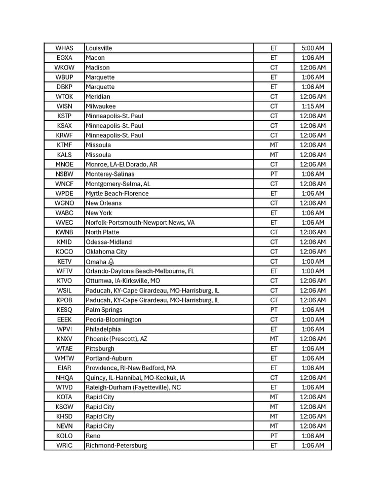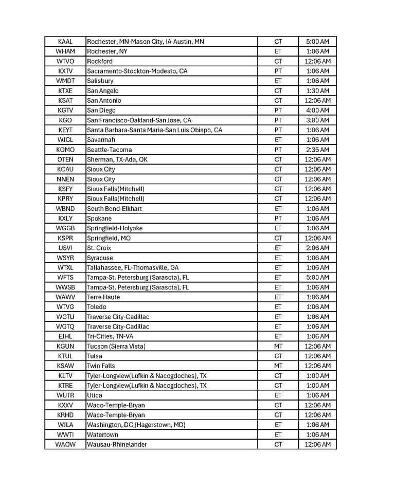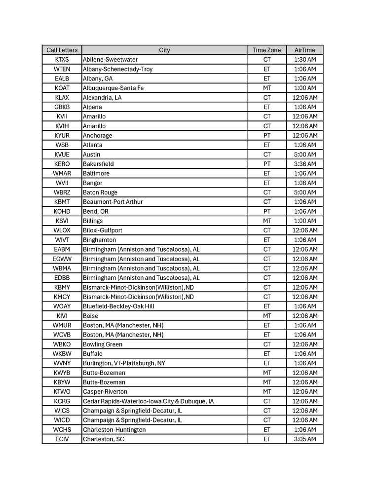 Broadcast Schedule by City
