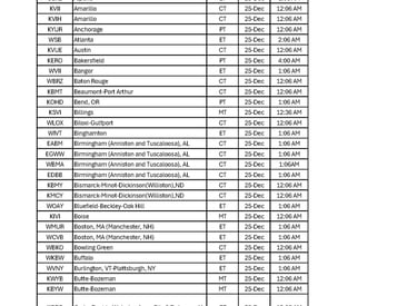 Broadcast Schedule by City