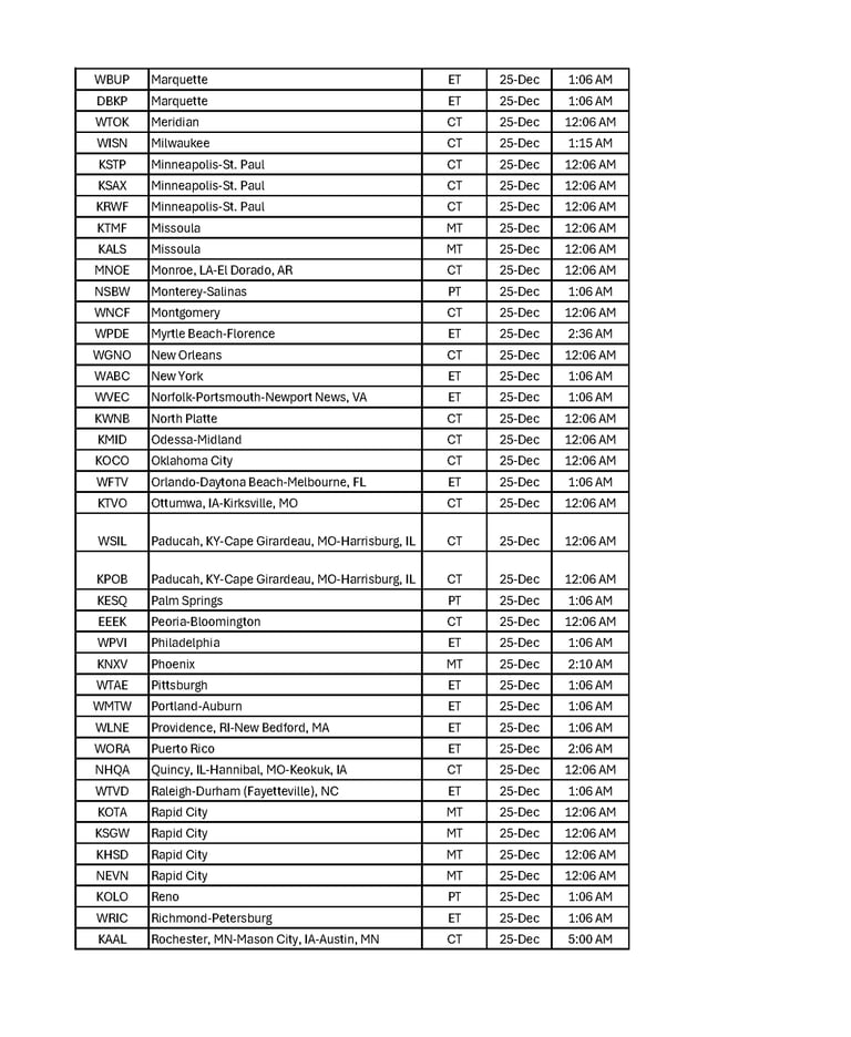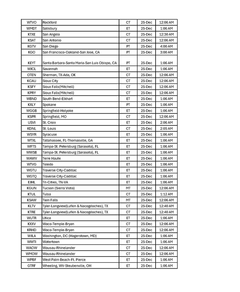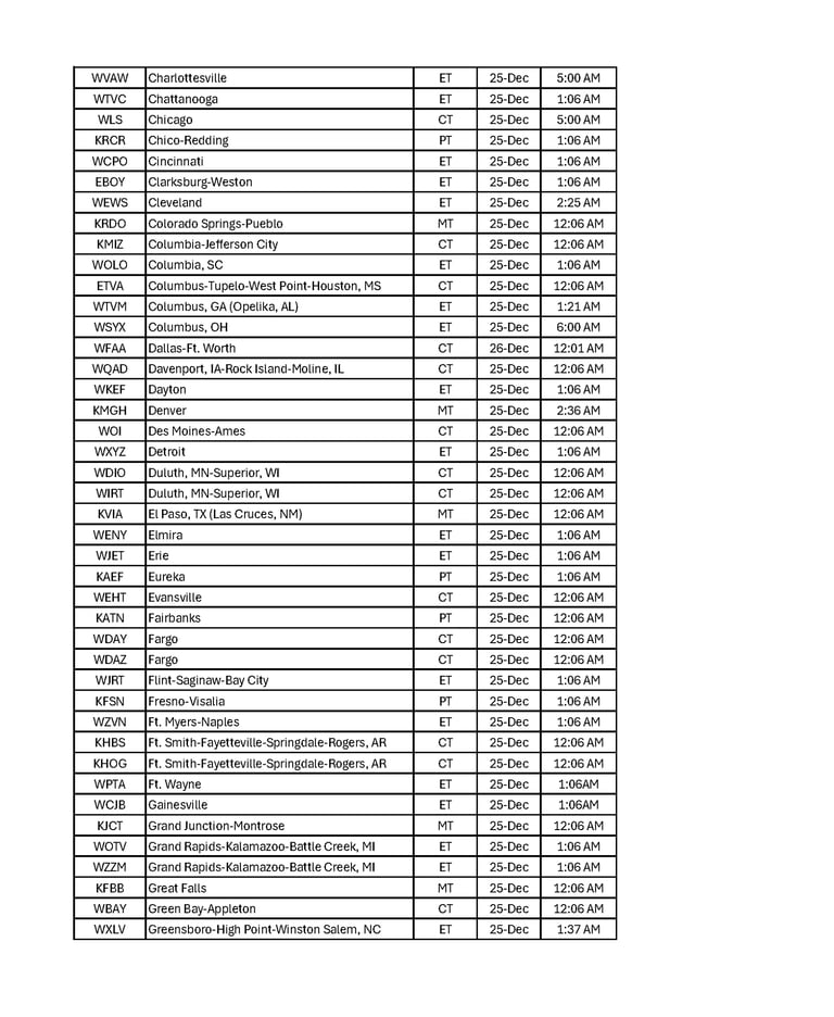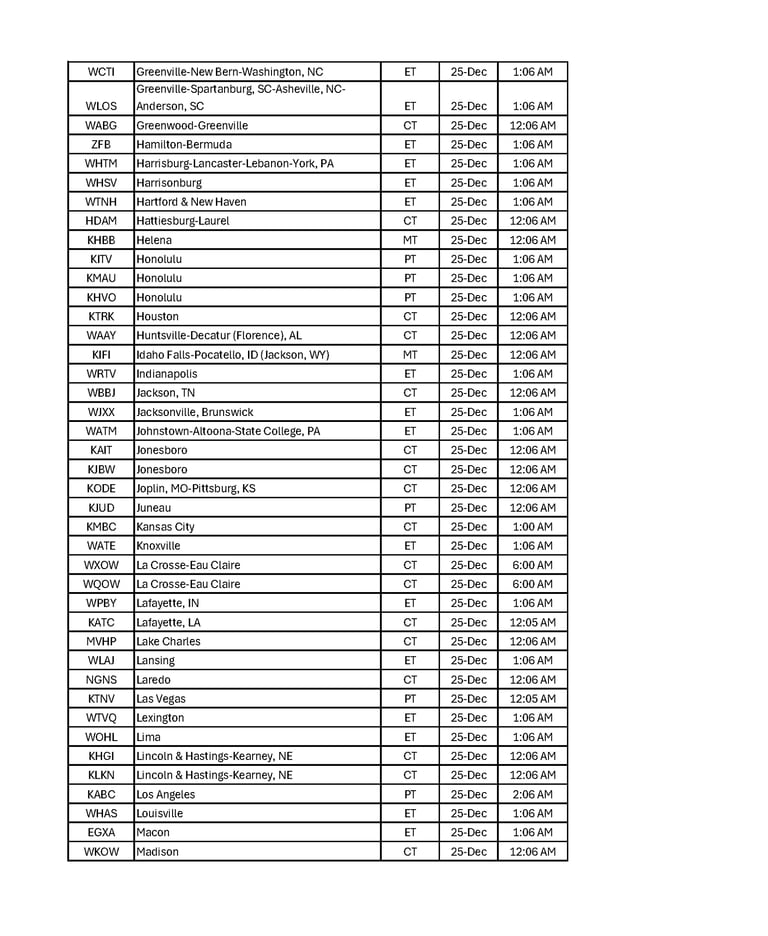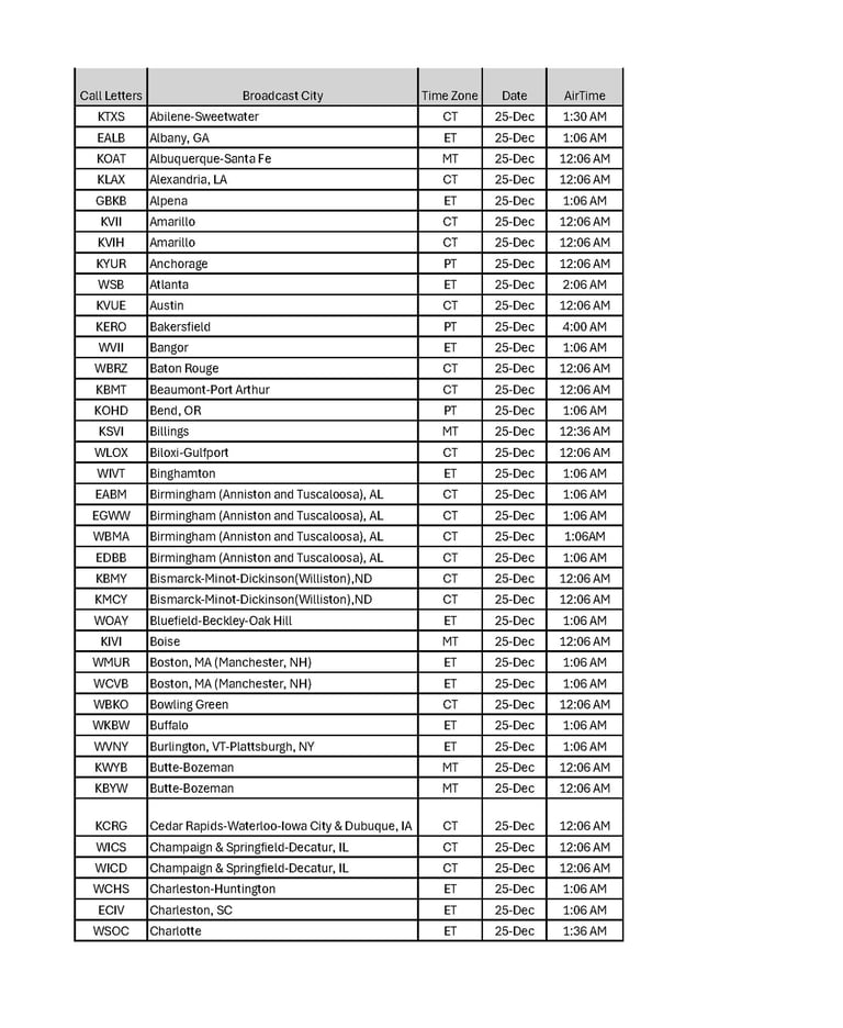 Explore our list of broadcast cities along with their respective program dates and times and share with your friends and family throughout the USA. Let's watch together as we celebrate the true meaning of the Season!
